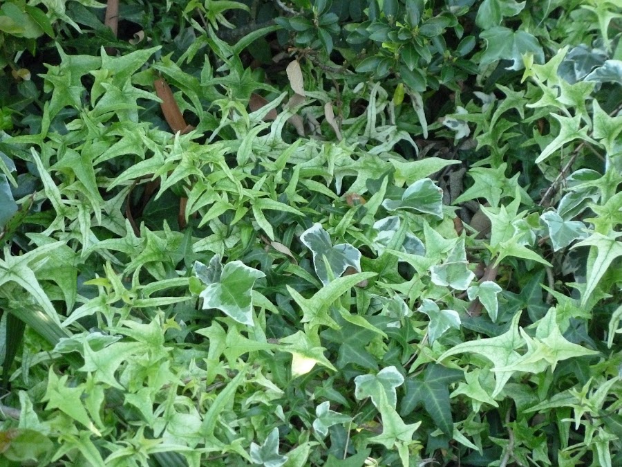 Follaje: Verde oscuro o variedad verde con amarillo. Flores lilas.
