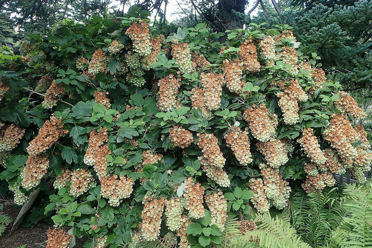 Hydrangea Quercifolia El Hortensia Quercifolia, es otra variedad bastante común. Con su singular color otoñal y cuya hoja recuerda el follaje del roble, esta variedad por lo general tiene interés durante todo el año. También tolera condiciones más secas. La Hortensia Quercifolia se debe podar en primavera temprana.