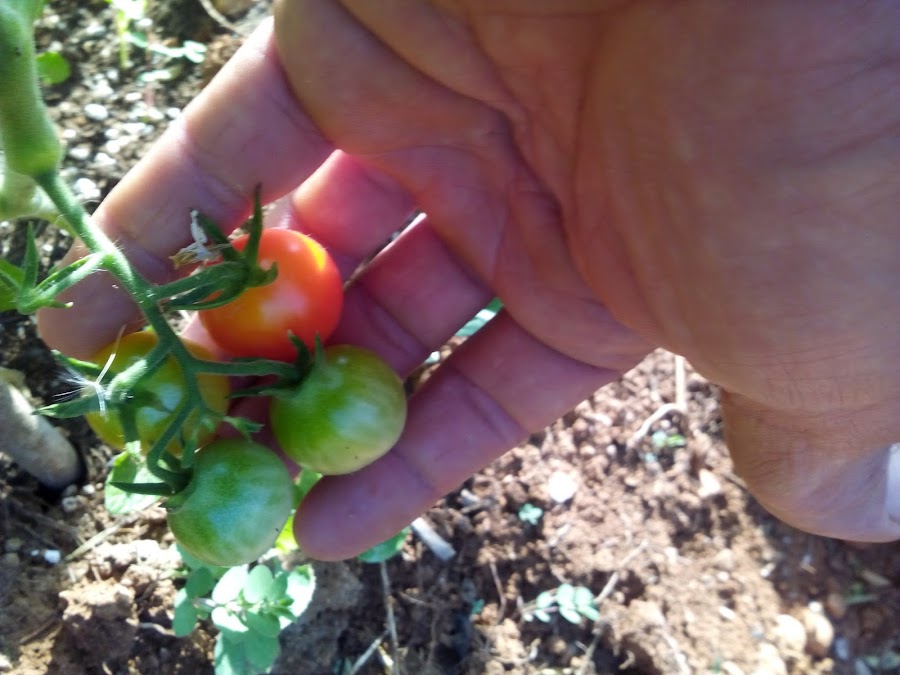 Nosotros recogemos los tomates a medida que se van volviendo colorados aunque no todos los tomates del racimo lo estén. A partir de los 3 meses, más o menos si se sembraron semillas y alrededor de un mes, si se plantaron las plántulas, es cuando empieza la producción de frutos.