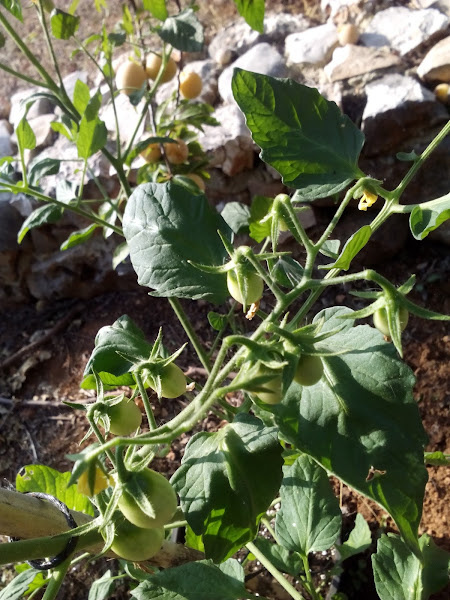 Algunos tomatitos empiezan a ponerse colorados.
