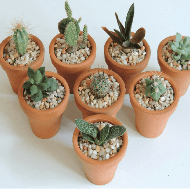 Es conveniente ponerlos en tiestos de barro estos son los mejores para cactus y demás suculentas, su porosidad ayuda a que el aire circule y a que el agua se evapore con mayor facilidad, lo que da a la planta una atmósfera perfecta a su habitad. Las macetas de plástico favorecen a la falta de aire y esto puede encaminar a tener problemas en la raíz.