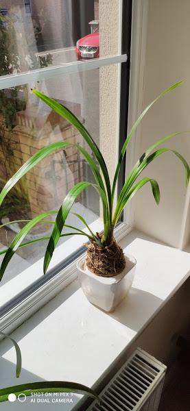 In fact last year I got lucky and bought two cymbidums from Homebase in Stamford UK. Each cost me 2 pounds, which is a bargain. And they both went into big pots and semi hydroponics and outside. Because why not. Experimenting. Then I bin the very large clump one, and kept the other small one. It had very thin, blade like foliage. Bulbs were much, much smaller. I though this one is really nice, I shall keep it. Kept I had it. In the garden, for a year.