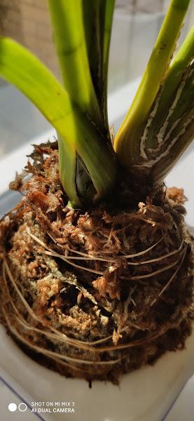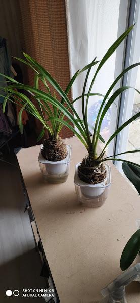 Now going back to my other cymbidium, I took it back into the house, cleaned with every insecticide I could find and had to divide it into three. Two were potted into sphagnum moss in self watering pots. The third division was in bad condition and it went into the bin.