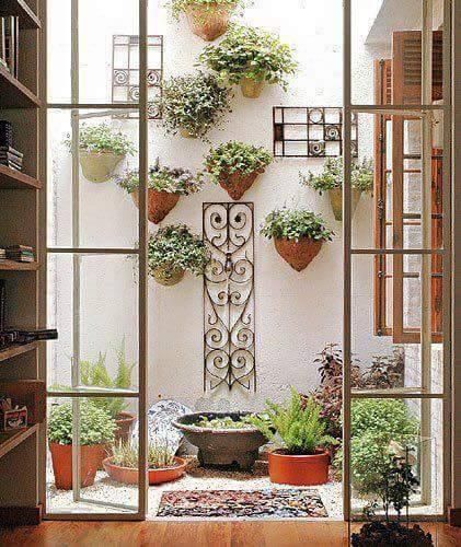 Utiliza enredaderas y jardineras para adornar espacios altos, y cuelga cestas decorativas y macetas con flores para darle mas vida a tu jardin.