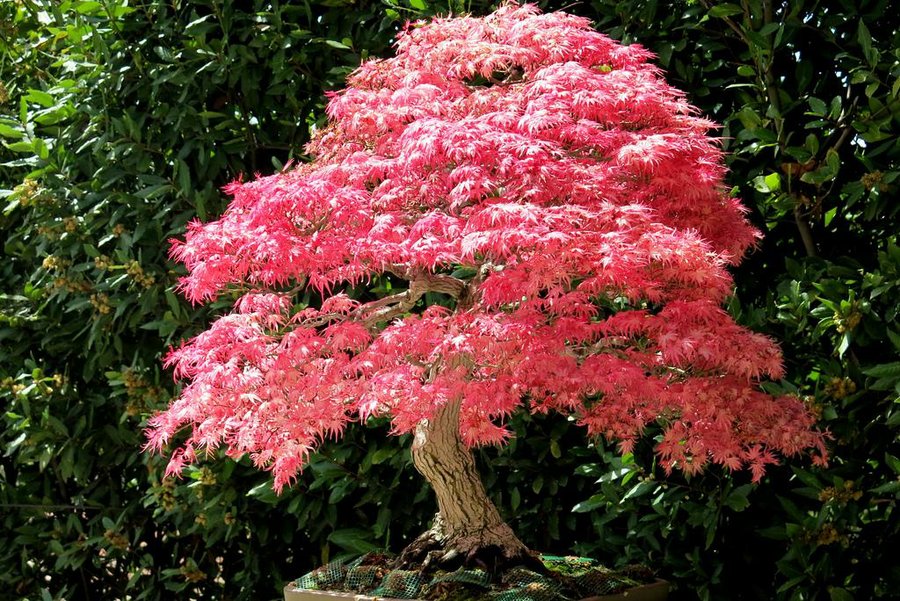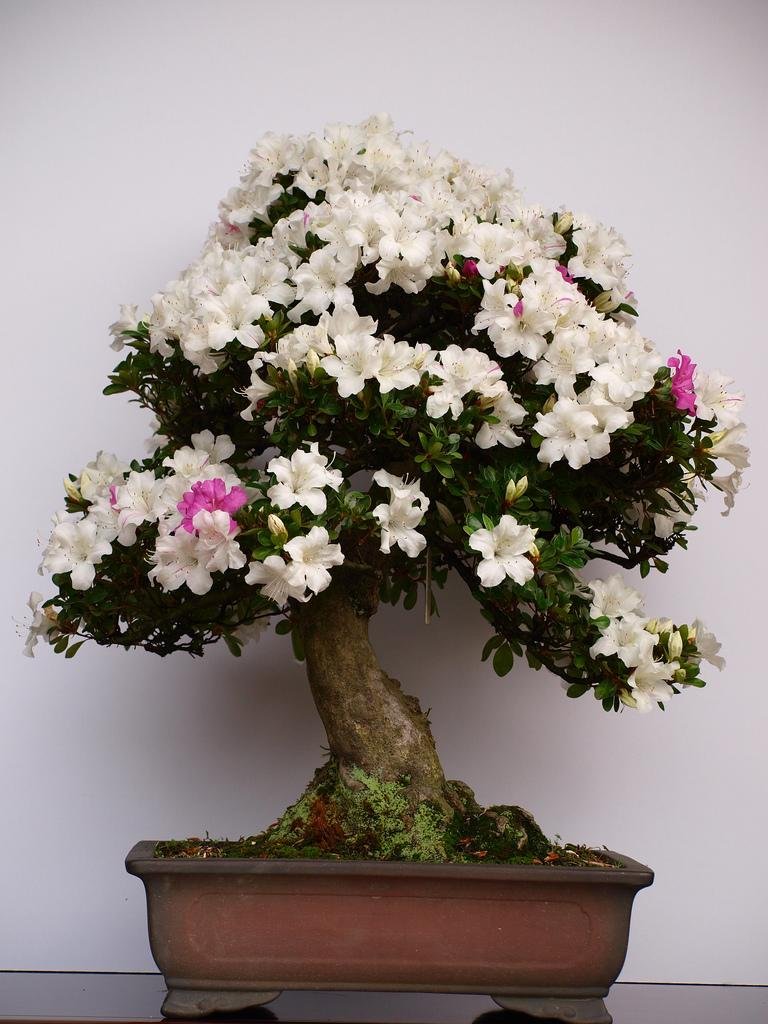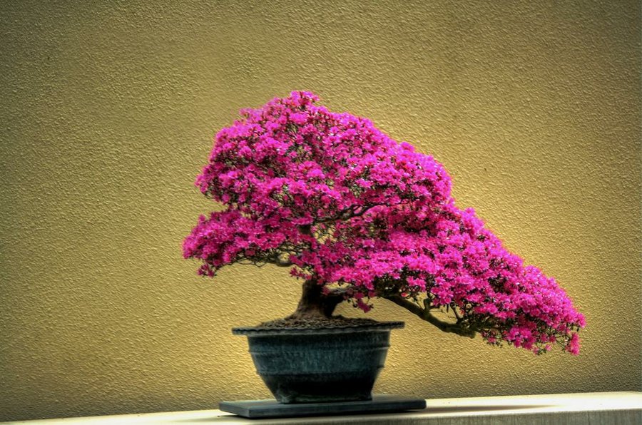 En cuanto a las especies, prácticamente podemos crear nuestro pequeño bonsái con cualquiera de ellas. No obstante, sí existen algunas más deseadas y propicias, por ejemplo los arces, los rododendros o los pinos. En estas imágenes podréis ver muchos de cada uno de ellos (justo la de aquí abajo es una buganvilla, a mí me parece preciosa...).