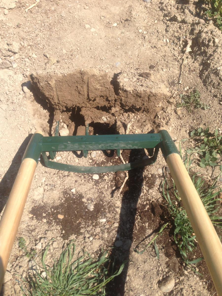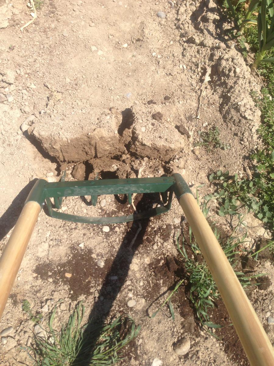 Se recomienda usar esta herramienta tirando de los mangos hacia uno mismo y hechando un paso hacia atrás. Hoy como era el día de prueba yo con la emoción lo he hecho hacia delante, y sinceramente en el video que vi lo hacían hacia delante, pero entiendo que haya que hacerlo hacia atrás para no pisar la tierra que ya hayas trabajado.