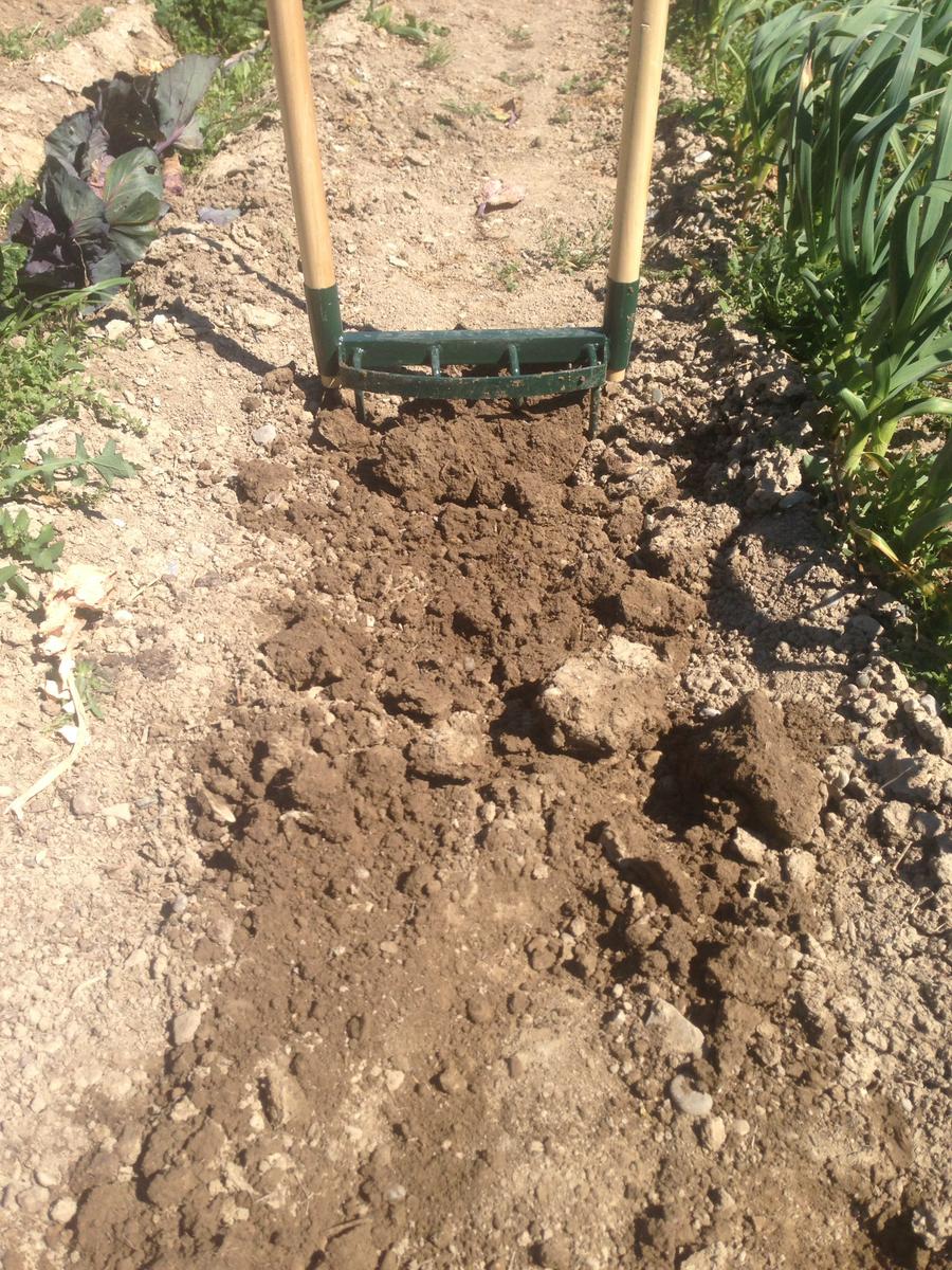 Una de sus ventajas, es que no daña la fauna beneficiosa del huerto ni el ecosistema del huerto, ya que clava las púas verticalmente y levantas la tierra aireándola.