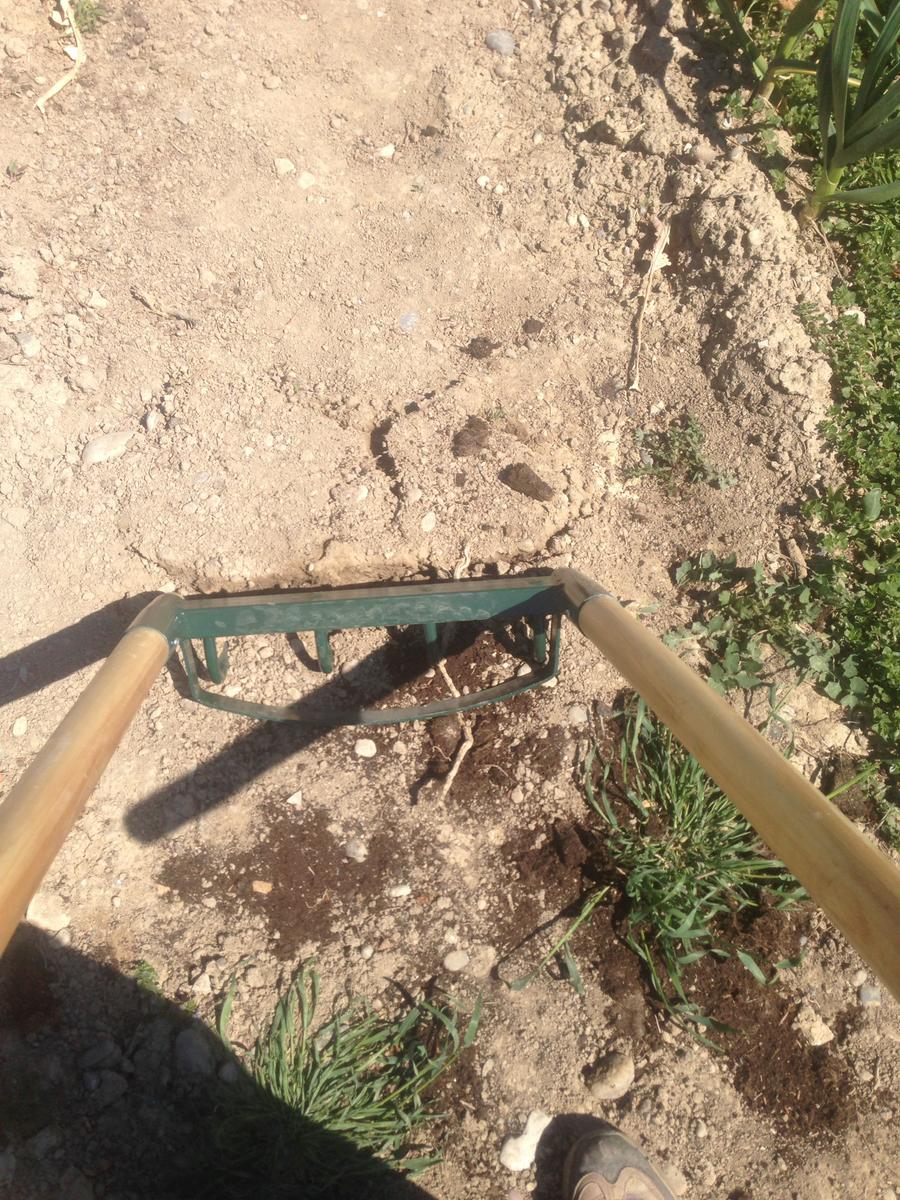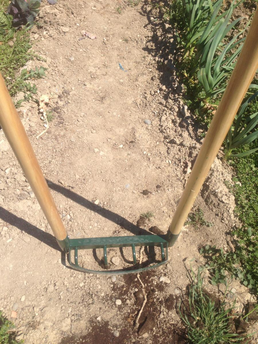 Se recomienda usar esta herramienta tirando de los mangos hacia uno mismo y hechando un paso hacia atrás. Hoy como era el día de prueba yo con la emoción lo he hecho hacia delante, y sinceramente en el video que vi lo hacían hacia delante, pero entiendo que haya que hacerlo hacia atrás para no pisar la tierra que ya hayas trabajado.