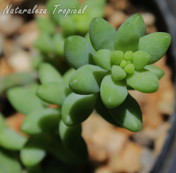 El conjunto de sus hojas en forma de racimos colgando compone una bonita imagen. Es una plata ideal para personas sin mucha experiencia, ya que sus cuidados son bastante básicos y sencillos. Sólo será necesario regarla y transplantarla de vez en cuando. Se debe dejar secar el sustrato de tierra entre riego y riego y en invierno regarla con menor frecuencia. Florece en primavera y verano, y brota unas preciosas flores de un tono rosa, que también pueden ser amarillas o blancas.