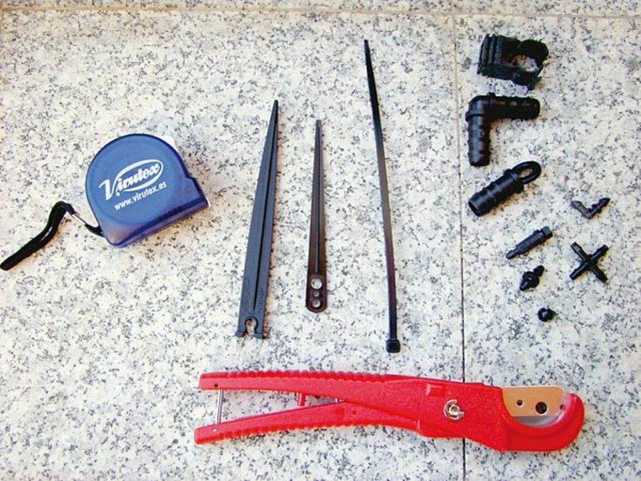 Nuestra amiga Sonata empieza asegurando que la tarea es muy fácil. Con su habitual pericia la realizó sin problemas, aunque era el primer trabajo de riego que ejecutaba. En la imagen vemos algunos de los elementos que utilizó.