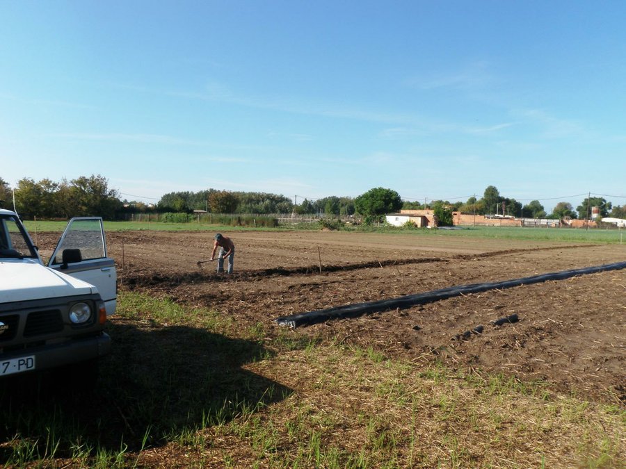 La delimitación de cada una de las pastillas de terreno se efectúa mediante un caballón cubierto con tela antigerminante. El resultado que se obtiene es una clara definición del espacio a cultivar.