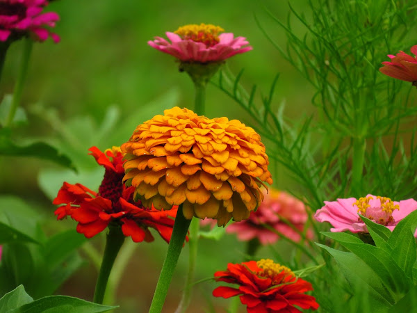 La zinnia se puede encontrar en una gran variedad de colores, desde violeta o crema hasta rojo y amarillo, y también con diferentes tamaños, dotando a tu parterre de una diversidad de tonalidades que le darán viveza y esplendor.