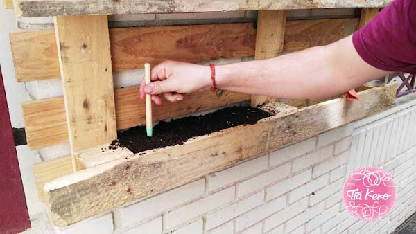 Siento mucho no tener imágenes de cómo hizo ese soporte para las plantas con palets, pero básicamente os diré que utilizo las maderas de un segundo palet para poner como estanterías en el primero y así poder contener la tierra y las plantas.