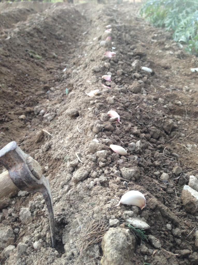 En el menguante de Octubre del año pasado, sembramos unas cuantos dientes para cabezas y otros tantos para ajos tiernos, con la intención de ir cosechando a principio de año los ajos tiernos, y para Marzo tener cabezas de ajos nuevas.