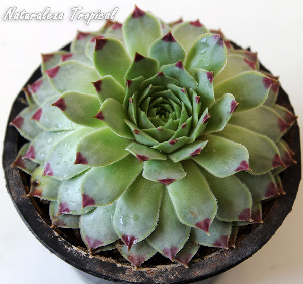 El aspecto de la sempervivum es bastante peculiar, se suele confundir con algunas especies de cactus. Tiene base leñosa y hojas carnosas.