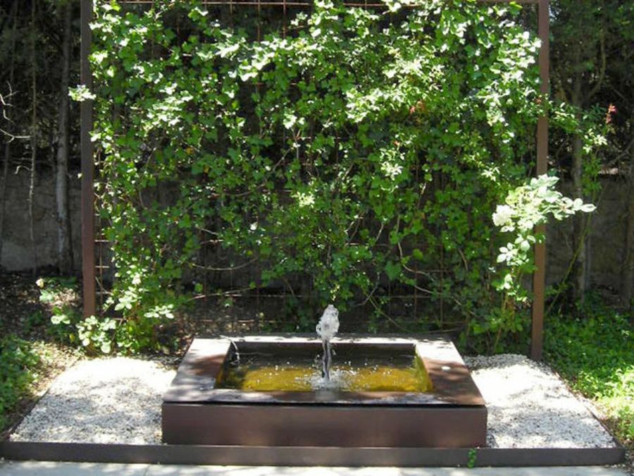 La pérgola, diseño original de Liquidambar, se convierte en el elemento ideal para disfrutar de las suaves tardes primaverales, mientras los niños disfrutan jugando con sus amigos en el jardín. Un lugar para meditar en silencio. Otro rincón con un encanto muy especial es la zona de la fuente, flanqueada por grava blanca y una trepadora que sirve de mural de fondo.
