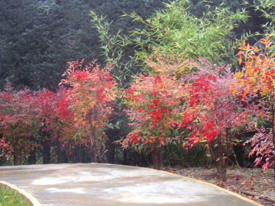 La Nandina domestica acompaña al caminante con sus tonos otoñales durante su paseo por el jardín. Un vergel dividido en distintas áreas que pueden ser utilizadas por pequeños y mayores: piscina, pista de pádel, caminos de patinaje, praderas verdes para jugar al fútbol... Todo ello sin renunciar a un estilismo y una apariencia estética de primer nivel.