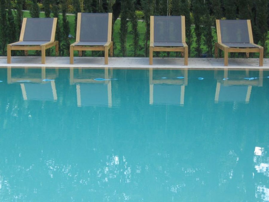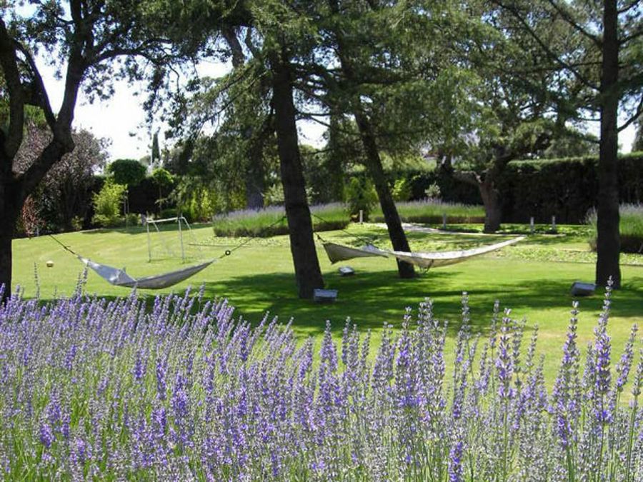 Junto a la pista de pádel, los bulbos primaverales crecen entre la hiedra. Los caminos que comunican las distintas zonas del vergel se han construido con la anchura suficiente para que los niños puedan patinar sobre ellos. La piscina, diseño de Liquidambar, destaca por la pureza del color azul del fondo, aportando una nota de frescor al conjunto. La elección del mobiliario exterior también resulta clave.