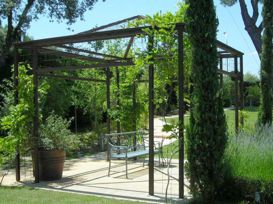 Cuando la gente del Estudio de Paisajismo Liquidambar recibió el proyecto de realizar un jardín, tuvieron que dar lo mejor de sí para poder combinar, en un mismo espacio, diversión para los niños, disfrute para los mayores y un reducido consumo de agua. Este chalé, situado en la Sierra de Madrid, es un ejemplo perfecto de cómo podemos unificar todos estos elementos en un mismo vergel, sin dejar de lado una cuidada apariencia estética. El jardín se plantea como un espacio lúdico y hermoso que se recorre por el camino de cipreses, un paseo intimista en el que descubrimos parterres de lavandas, pérgolas cubiertas de vegetación, fuentes que susurran y espacios de sosiego.