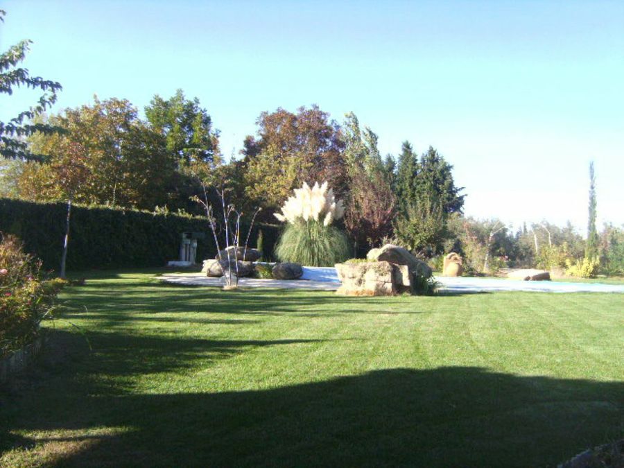 El actual jardín, obra del paisajista, cuenta con una correcta definición de los espacios como patio, piscina, barbacoa, estanque e incluso huerto.