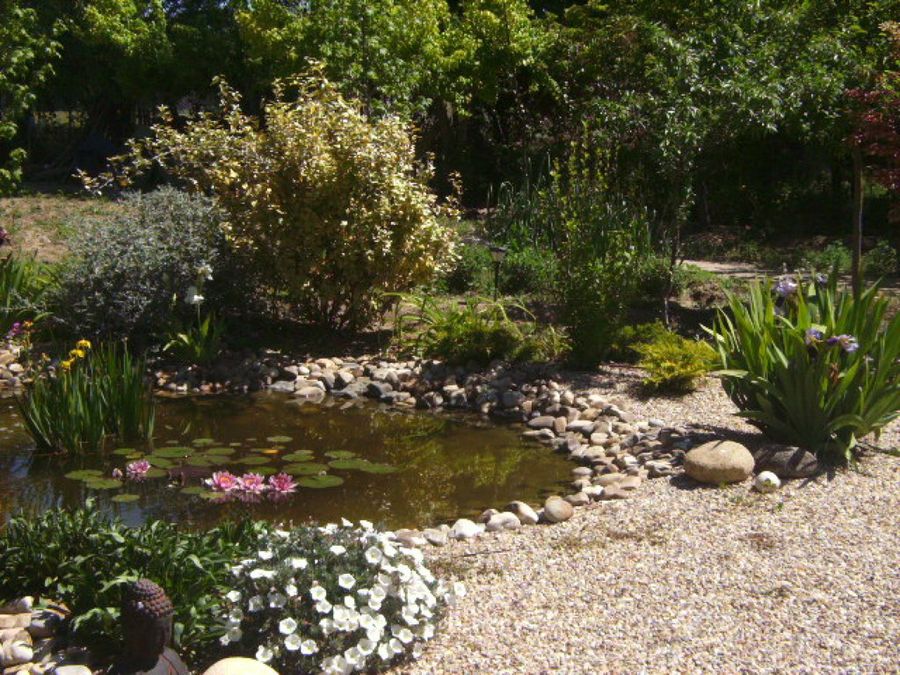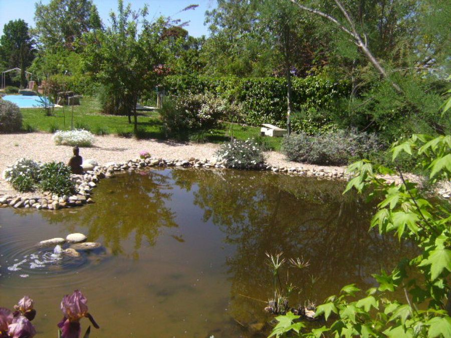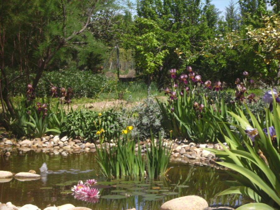 Panorámica del estanque artificial naturalizado, no tiene ningún tipo de filtros, salvo las plantas emergentes y oxigenadoras.
