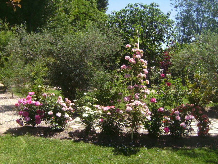 Fotos de la rosaleda, compuesta por rosas antiguas perfumadas.