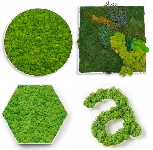 Los cuadros de musgo pueden estar compuestos sólo por musgos o también por musgos y plantas preservadas brindando así más posibilidades de ser creativos y originales en su composición.Además de ser un elemento decorativo muy moderno y agradable tiene, también, la propiedad de ser un protector acústico que absorbe gran parte de los ruidos.