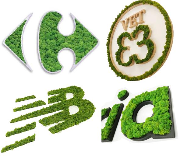 Gracias a que son elaborados a mano se pueden diseñar composiciones con diferentes formas y colores.Esto permite crear, entre otras formas, letras de musgo, como así también palabras, frases y, también, logotipos de empresas.