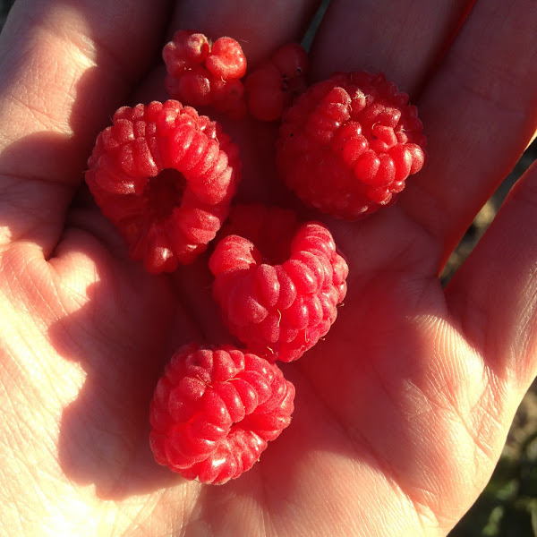 Hasta ahora hay unas bayas de la frambuesa y la fresa del bosque. Hay pocas, pero asi son mas sabrosas.