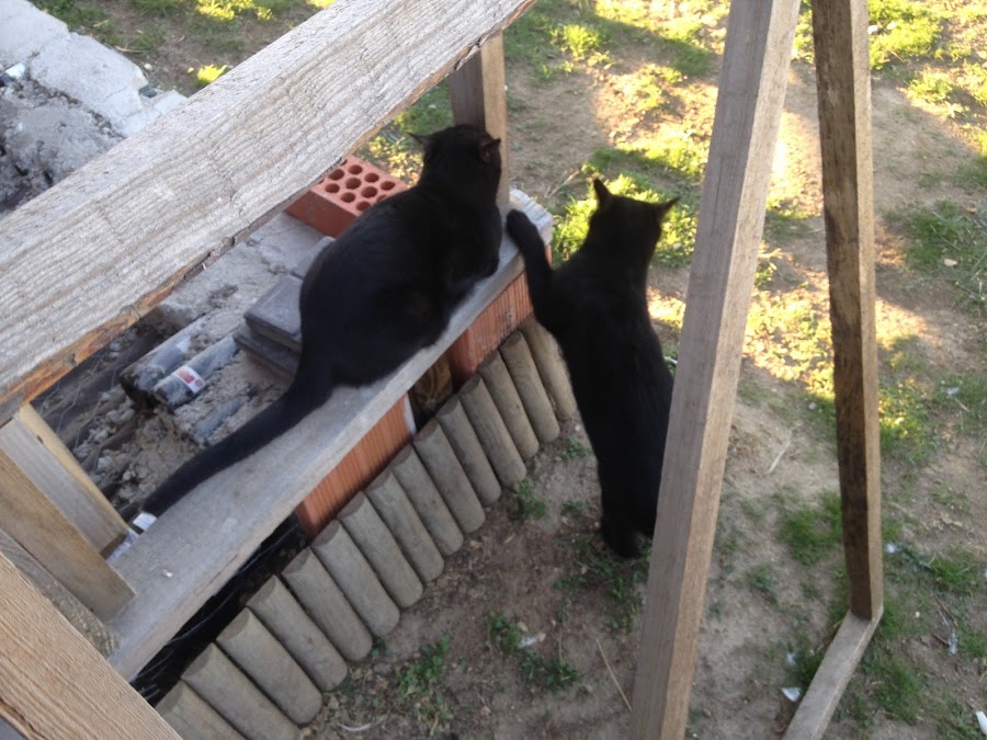 Gatitos ya tienen 6,5 meses. Paresen contentos y bien alimentados, aunque les doy un poco de comida por la noche. Espero que cazan. Sobre las finlas alrededor de nosotros hay muchos conejos. Antes en la nuestra tambien habían unas madrigueras. Pero teniendo la perra y dos gatos, ahora no veo ni las huellas de los roedores, aunque por el camino y detrás de la finca los hay muchísimo.
