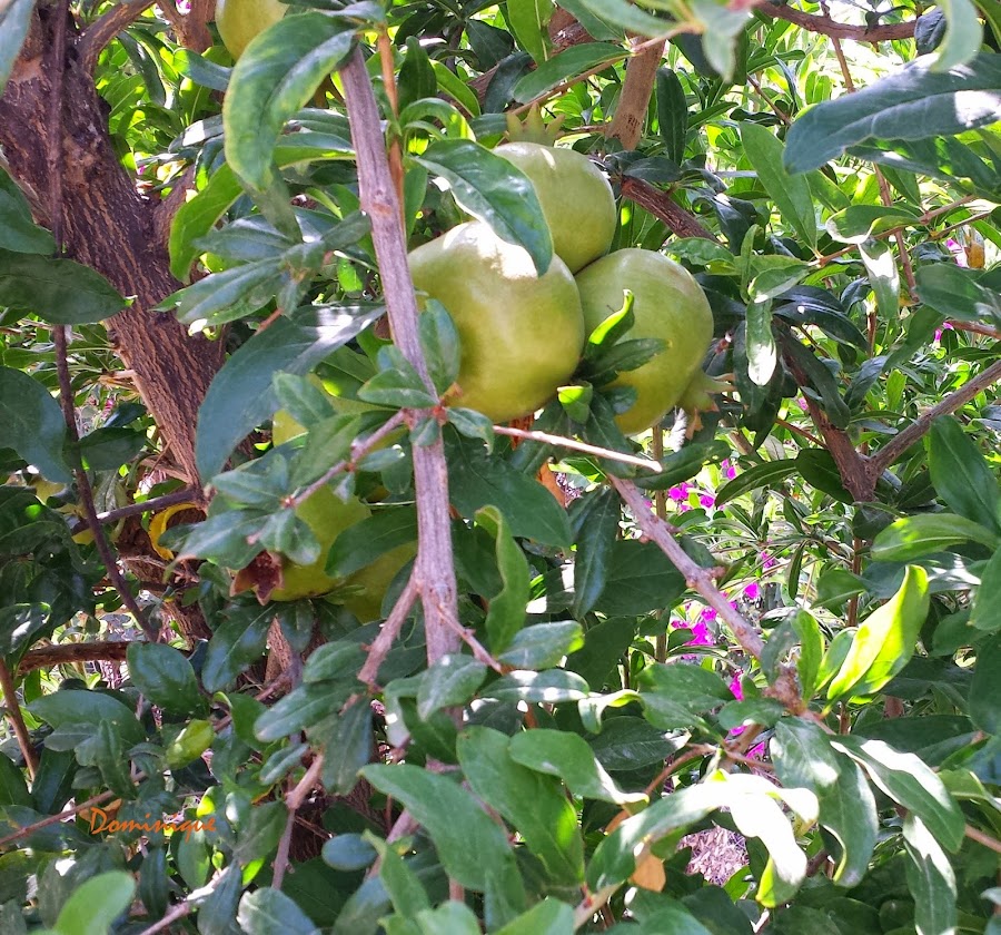 Arriba una panorámica del huerto, no fotografié las cebollas que estaban enormes ni los arboles frutales a excepción de este granado y sus frutos que me pareció hermoso.