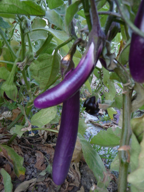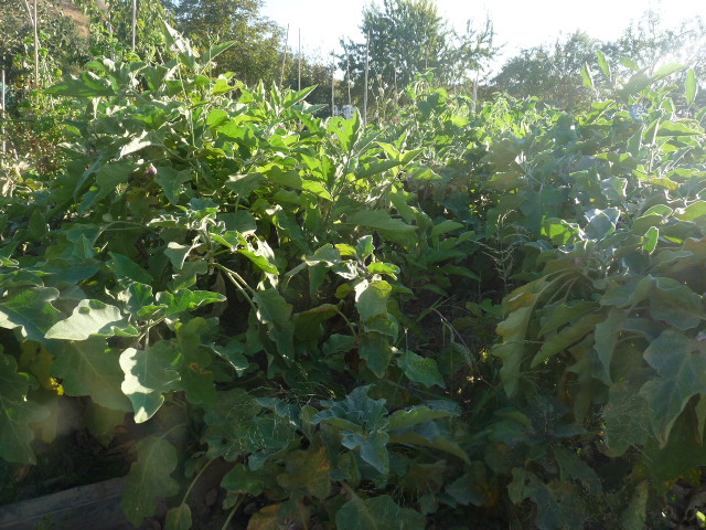 Las berenjenas han producido poco, a excepción del principio del verano, mucha hoja pero poca berenjena, creo que las puse demasiado juntas. Las que hay ahora las he dejado para simiente, a ver si les da tiempo a engordar.