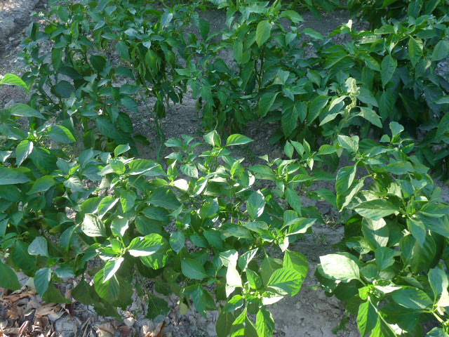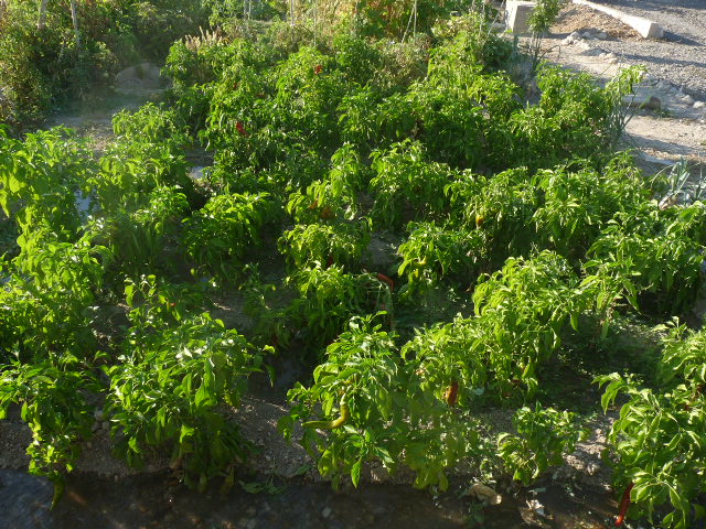 Estos pimientos los puse como tardíos por experimentar y ahora están bastante mejor que los demás y en plena producción, como casi todos: