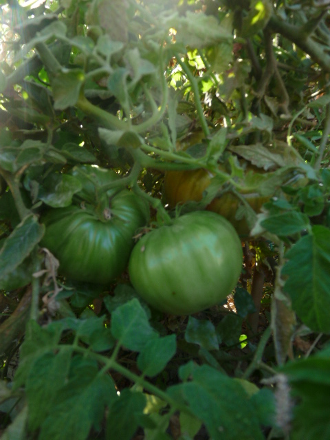 Los tomates siguen produciendo, incluso floreciendo a pesar de que las matas están ya poco lustrosas, pero a los tomates ya les cuesta ponerse pintones, de hecho por alguna razón les ha costado durante todo el verano, y eso que sol precisamente no ha faltado:
