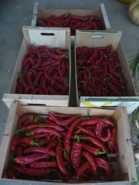 Estos son los pimientos de secar, han sido bastante productivos y aún hay bastantes madurando en las matas: