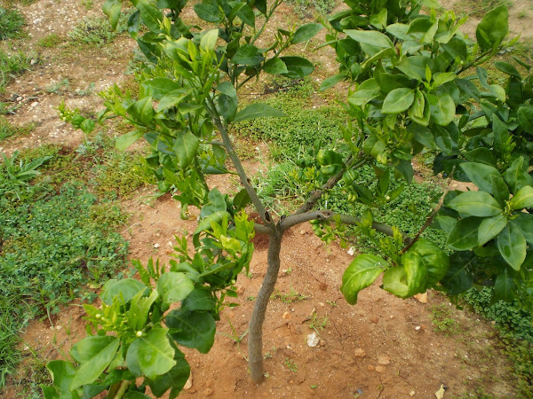 Los dos naranjos navelinos del Huerto empiezan a asomar con sus primeras flores de azahar...fragancias del huerto casero.