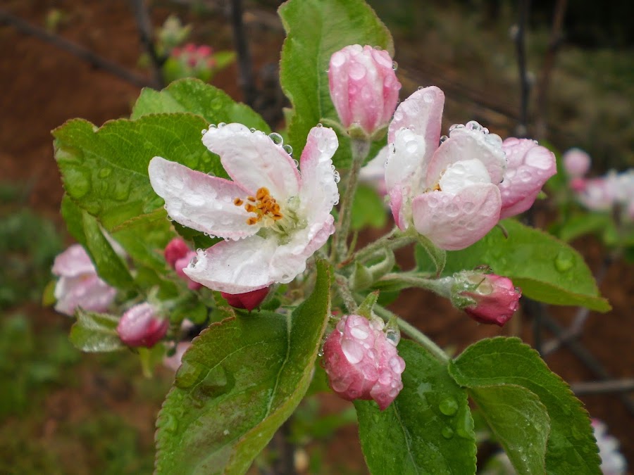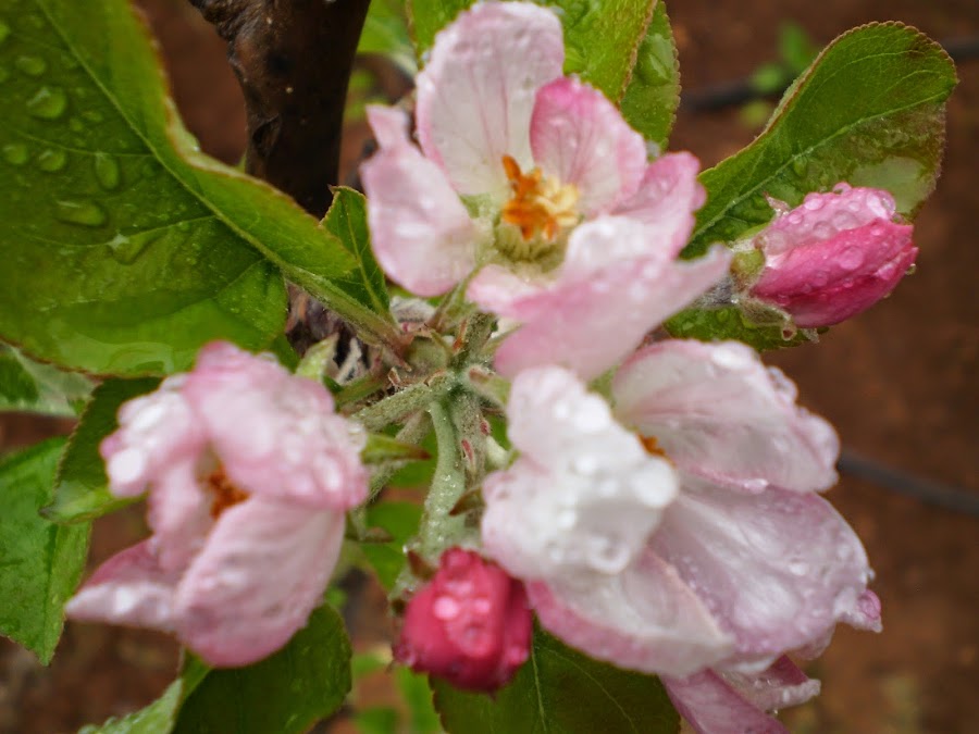 Flores mojadas del manzano.