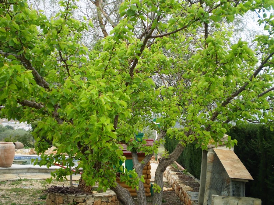 Este año tiene una buena cantidad de frutos, dentro de poco tendremos que hacer un aclareo para favorecer el desarrollo de frutos.