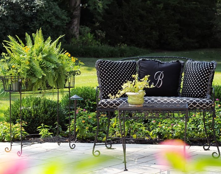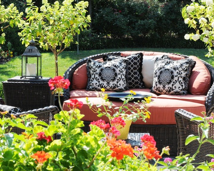 Amante de jardines y de las flores, ha diseñado el jardín de su casa como una extensión de la misma, con cómodos asientos de mimbre o de forja donde pasar una apacible tarde de verano.