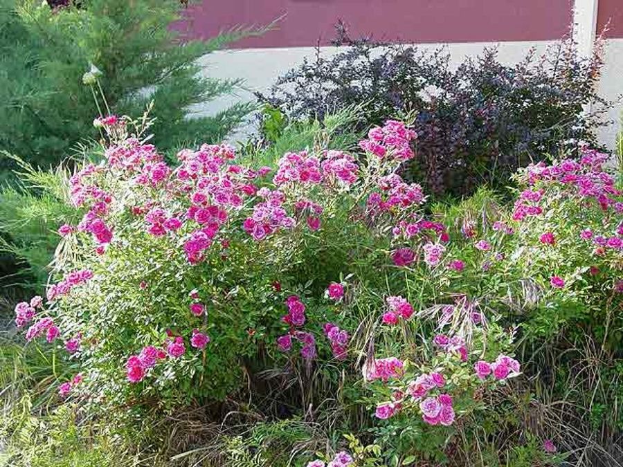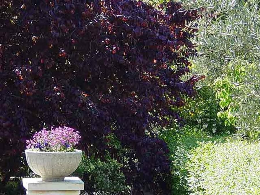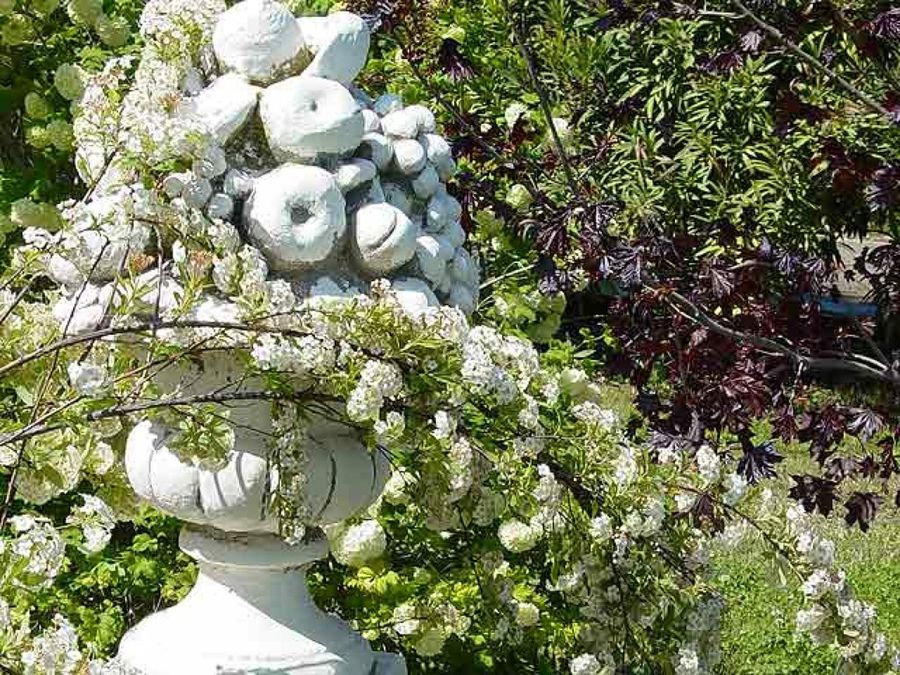Las rosas, principal pasión del propietario y artista, fueron empleadas por el paisajista, recurriendo a todas las estirpes antiguas como las rosas de Borgoña y de Damasco, cuya principal característica, aparte de su grácil belleza es su intensa fragancia. Rosas de todos los tamaños, colores y aromas se pueden ver en este sensitivo Jardín.