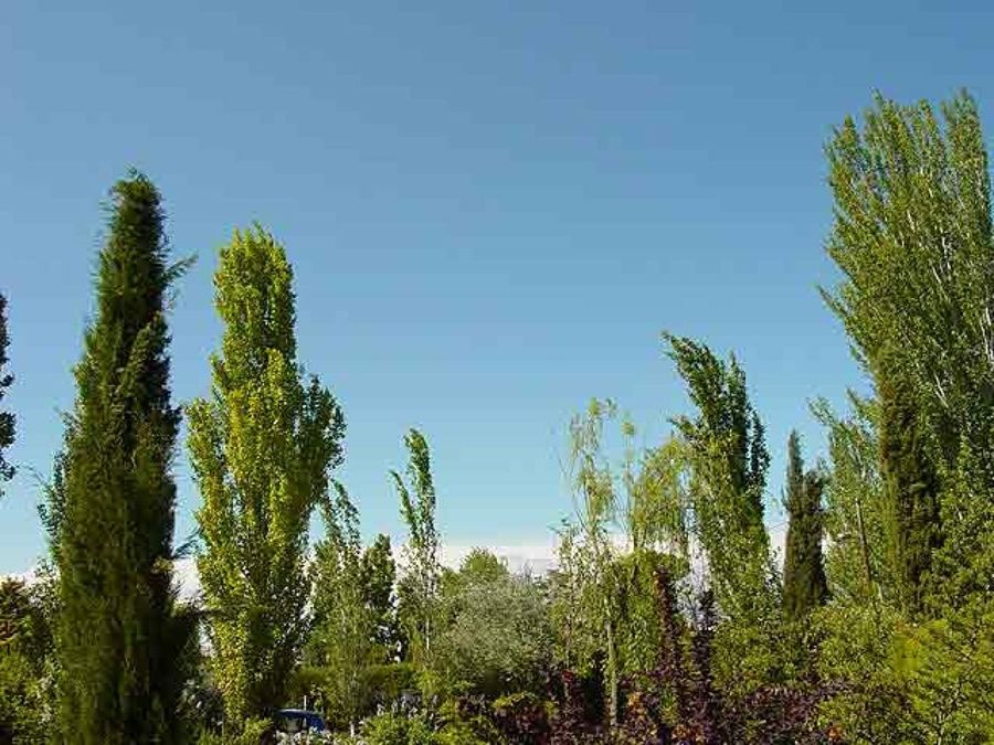 En esta panorámica del arbolado del Jardín, se puede comprobar todo el buen trabajo de paisajismo que hay detrás. Tanto el paisaje interior como el exterior se funden en uno solo, creando la ilusión óptica de encontrarnos en una amplísima zona de vegetación y árboles.