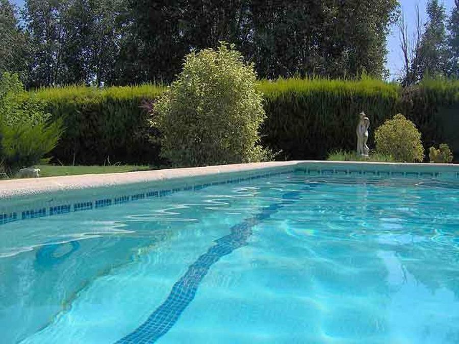 La piscina se ha integrado con la vegetación del Jardín todo lo que se ha podido dentro de lo que permite una piscina de construcción clásica.