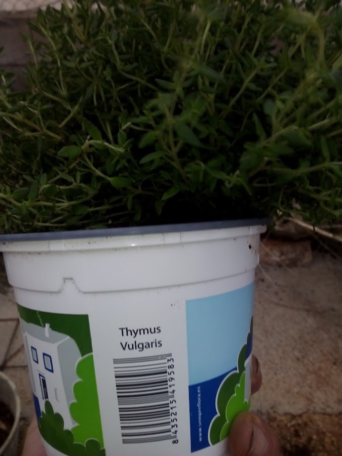 El tomillo, también llamado tremoncillo es un arbustillo bajo, perenne, con una altura entre los 15-40 cm de altura, muy típico en las zonas del mediterráneo, no en vano en el contenedor viene con la leyenda; Aromas del mediterráneo.
