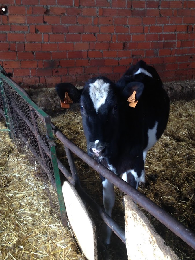 Por la mañana hemos ido a la granja por la leche de vaca. Y alli esta noche han nacido los corderitos y los gatitos. ¡Mi hija nunca veía antes crias de los animales que tienen solamente 6-8 horas! ¡Ella estaba encantada!