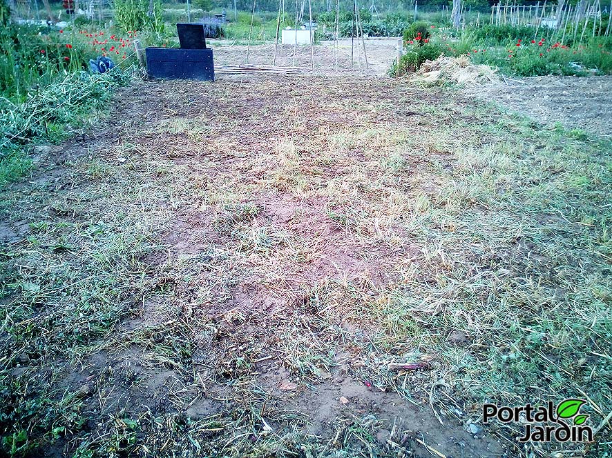 Decidí poner un plazo de finalización para dejarlo en condiciones en un máximo de 5 días y lo logré en 4 pero con una pequeña ayudita ;) me pasaron la mula mecánica con la que logré airear, ablandar y remover el suelo que estaba duro como la roca.