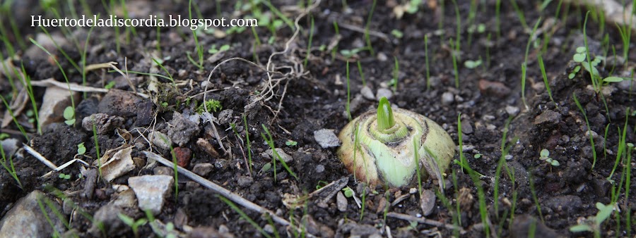 Esta semana han empezado a brotar las cebollas que planté hace unas semanas para calçots, lo que me hizo recordar que tenía que plantar más. No creo que haga una gran calçotada, pero es más que nada probar el sistema. Las que primero han empezado a brotar son las que le había recortado la punta del bulbo antes de plantarlo. Las otras, que básicamente puse en la tierra tal cual, medio enterradas, aún no han cambiado en absoluto. Siguen igual, como si las hubiera plantado ayer. No evolucionan ni para bien ni para mal, por lo que hace que se confirmen mis sospechas. Finalmente creo que se deben plantar sin la punta. Así me lo habían dicho, así las había plantado hace dos años, pero aún así sentía la necesidad de experimentar.