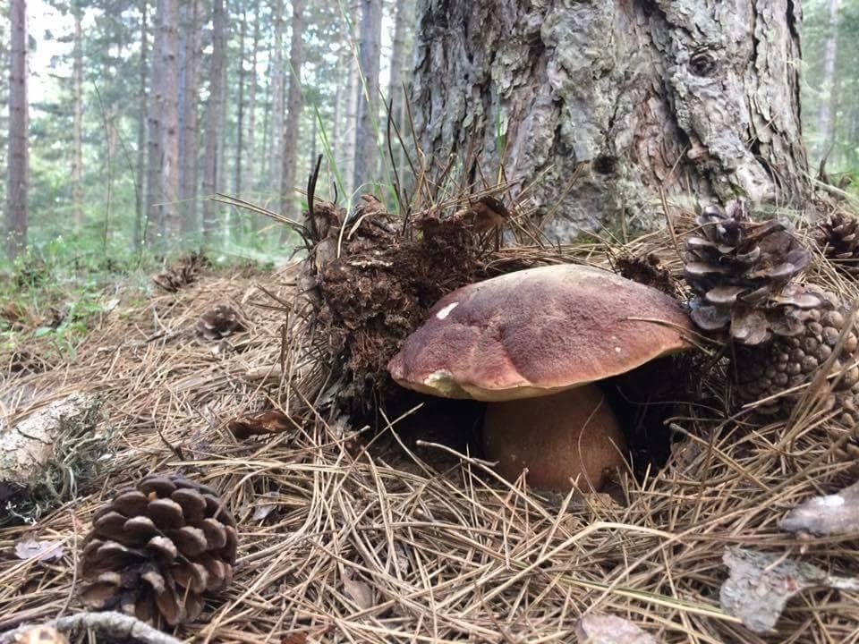 La cabeza oscura y compacta de un buen boleto nos llama la atención esperando encontrar por fin un pinícola. No, es un B. erytropus, desde luego es mucho más feo, azuleando todo él en cuanto se le toca o se le parte, pero casi casi tan delicioso en la cocina como sus parientes de la familia edulis.