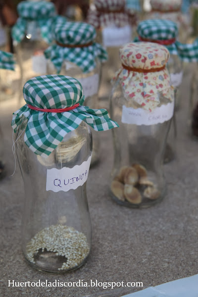 Maiz "Do país"Mi intención era cargarme de semillas locales, para poder empezar a cultivar un poco más de éstas, pero me llevé una decepción. No había un gran surtido. Según entendí (que a veces me cuesta), la red de semillas propone un intercambio gratuito de éstas, pero no se fijan especialmente en si son locales. Lo que buscan son semillas cultivadas por las personas libremente, fuera de grandes compañías y de semillas híbridas, pero no tienen especial fijación por lo local. Lo prefieren, sí, pero no he visto por su parte una vocación clara en este sentido. Está muy bien para conservar la biodiversidad, además de que es una manera de obtener semillas de una manera gratuita, con el único coste de entregar tú unas. En caso de que no hayas traído semillas (que por desgracia ese fui yo), ellos solidariamente te dan algún sobre de temporadas pasadas, con la esperanza de que tú, algún día, continúes la cadena y vayas, esta vez sí, a intercambiarlas.