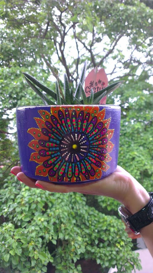 Todo comenzó cuando por medio de Instagram vimos cuentas muy creativas que combinaban el arte con la naturaleza y nos pareció una idea genial. Una tarde ella compra una maceta cruda, para un jade que estaba criando, y me pidió que la pintara, le encantó y al resto de mi familia también y de allí surge la idea de comercializar y crear.