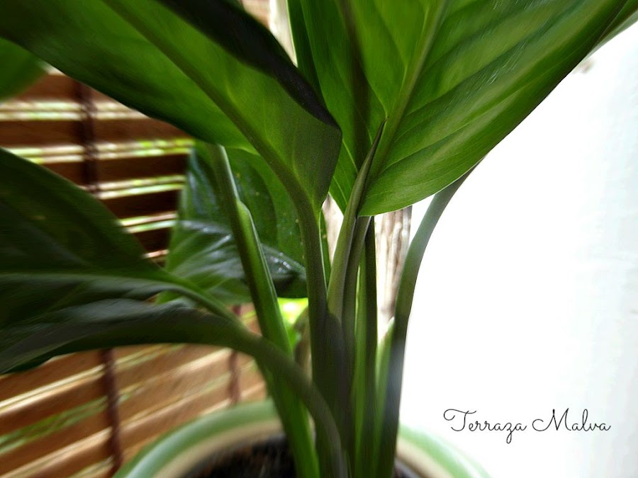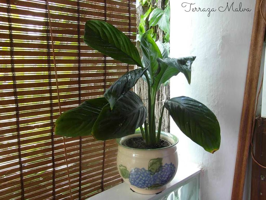 Lo más llamativo de los espatifilos son sus flores, pero a mí me gusta mucho también por sus hojas verdes, tan grandes y delicadas a la vez. Poseen largos peciolos que le confieren su porte característico.